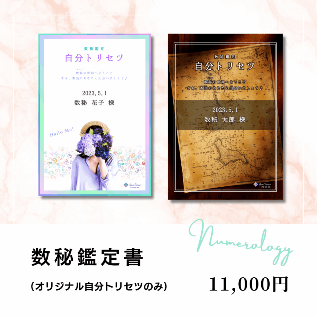 *「オリジナル鑑定書」は、お一人お一人の数秘を読み解きながら、手作りで制作させていただいております。お申込みを頂いてから作成するため、鑑定書をお渡しするまで少しお時間を頂いております。